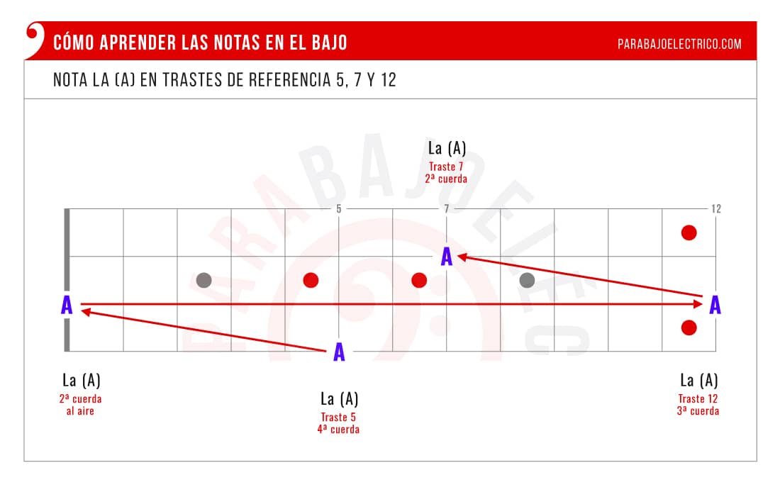 Pero no para interiorizar todas sus posiciones, sino para practicar tu agilidad a la hora de localizar notas, y empezar a familiarizarte con el diapasón del Bajo.