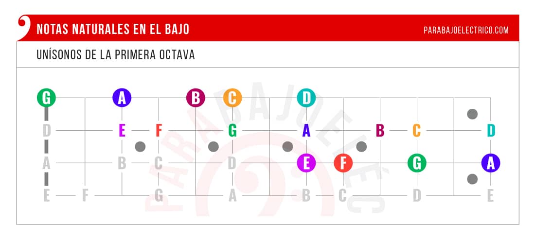 Vamos a comenzar por aprender las notas naturales a lo largo de una sola cuerda, y después (de forma progresiva) empezar a ubicarlas en otros trastes y cuerdas mediante unísonos y octavas.